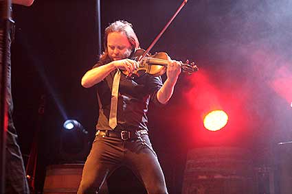 Die Umbauphase dauerte aber diesmal nicht lang und so enterten die Fiddlers unter frenetischem Beifall die Bühne. Das Sextett ging mit einer Energie zu Werke, die Ihresgleichen suchte und so sprang der Funke gewohnt schnell auf das Publikum über. Aus 25 Jahren Bandgeschichte und 12 Studioalben eine „Best of“-Setlist zusammenzustellen, kann nicht so einfach gewesen sein, die Erlanger haben es aber dennoch geschafft, eine bunte Mischung aus Klassikern, beliebten Cover-Songs und neueren Stücken zusammenzustellen. Mit „Take Me Back“ und „A Bottle a Day“ brachten sie ihre Fans schnell zum Tanzen, bevor sie „Walking High“ die „Irish Air“ besangen und zum „Jump“ aufriefen. Ein Instrumental-Medley durfte ebenso wenig fehlen wie ein Acoustic-Part, bei welchem sie mit „Irish Rover“ ein Traditional im Programm hatten, sowie mit „Dirty Old Town“ ein Ewan MacColl-Cover.