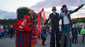 So begrüßte ein englischer Bobby zusammen mit der typischen Telefonzelle very British die Besucher. Ein langbeiniges Hippie-Pärchen voller Flowerpower traf im Großen Garten auf fantasievoll „behütete“ Ladies vom Ascot-Pferderennen. Inspiriert von der letzten Punk-Fashion-Week setzten sich zwei Palastwachen mit eigenwilligen Uniformen in Szene. Clownin Gina wandelte auf den Spuren von Charlie Chaplin und Andy Clapp nahm sich und sein Publikum mit britischem Charme zaubernd auf den Arm.