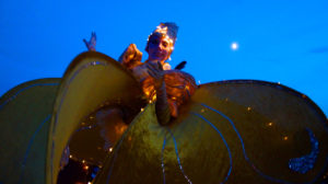 Die Stelzenwesen präsentierten den Zuschauern glänzende, goldene und violette Blätter, die zwei Glücksboten auf ihren langen Beinen tänzelnd durch die Menge manövrierten. Musikalisch empfing die Blaskapelle „Fanfare Ciocărlia“ mit fröhlichem Gypsy-Brass aus dem Nordosten Rumäniens, genauer aus dem Dorf Zece Prăjini. Auf der Probebühne erzählte „Ayassa“ musikalische Geschichten, die von einer Reise über die Kontinente handelten: Mit jiddischer, finnischer und mazedonischer Musik sowie Klängen der Sinti und Roma, stellte „Ayassa“ mal melancholisch-romantische Lieder, dann wieder temperamentvolle Balkan- Tänze vor.